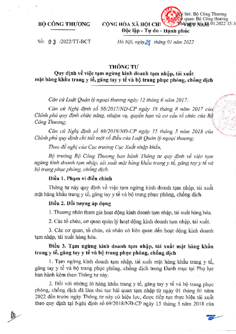 Số hiệu | 03/2022/TT-BCT | Cơ quan ban hành | |