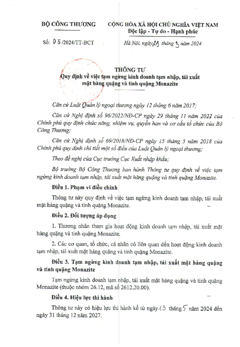 Tiêu đề văn bản | 33Win03 đăng ký tài khoản quy định về việc tạm ngừng 33Win60 liên Minh game trực tuyến tạm nhập, tái xuất mặt hàng quặng và tinh quặng Monazite | ||