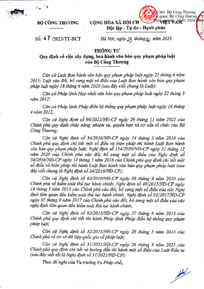 Số hiệu | 47/2023/TT-BCT | Cơ quan ban hành | Copyright © 33win.com Reserved |