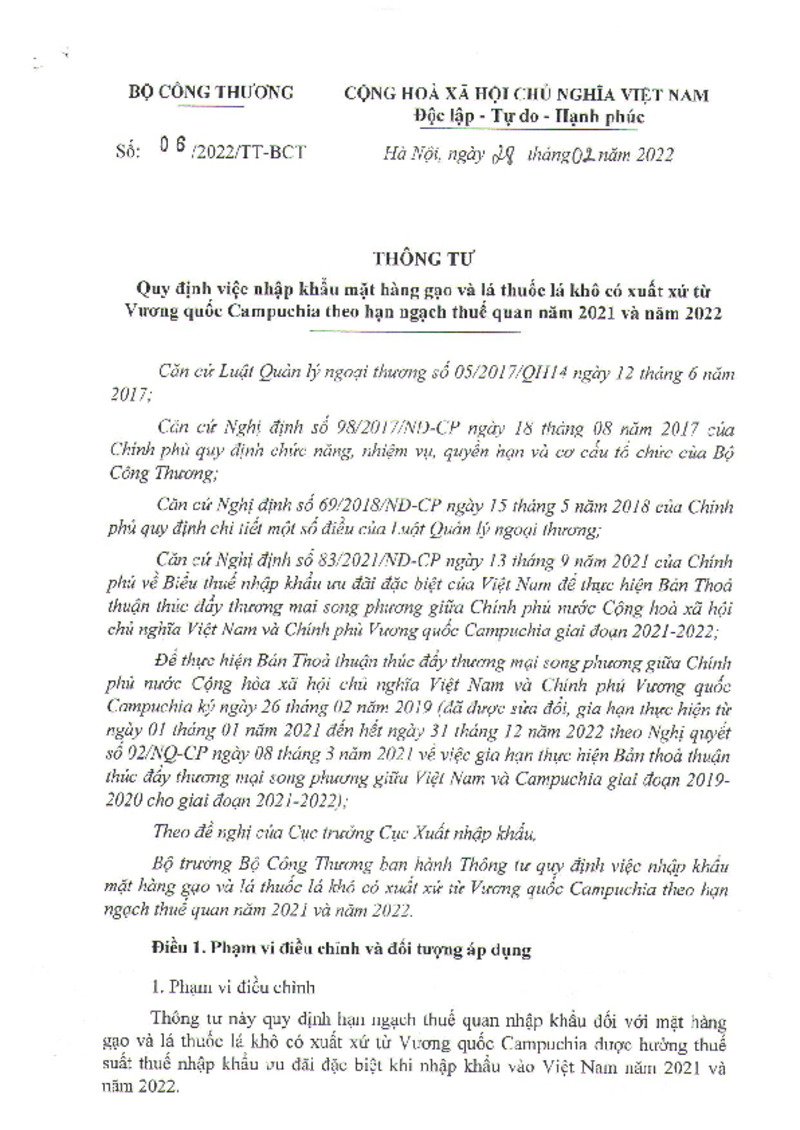 Tiêu đề văn bản | 33Win03 đăng ký tài khoản quy định việc Cài đặt 1.1.1.1 để truy cập web 33Win chính hãng mặt hàng gạo và lá thuốc lá khô có xuất xứ từ Vương quốc Campuchia theo hạn ngạch thuế quan năm 2021 và năm 2022 | ||